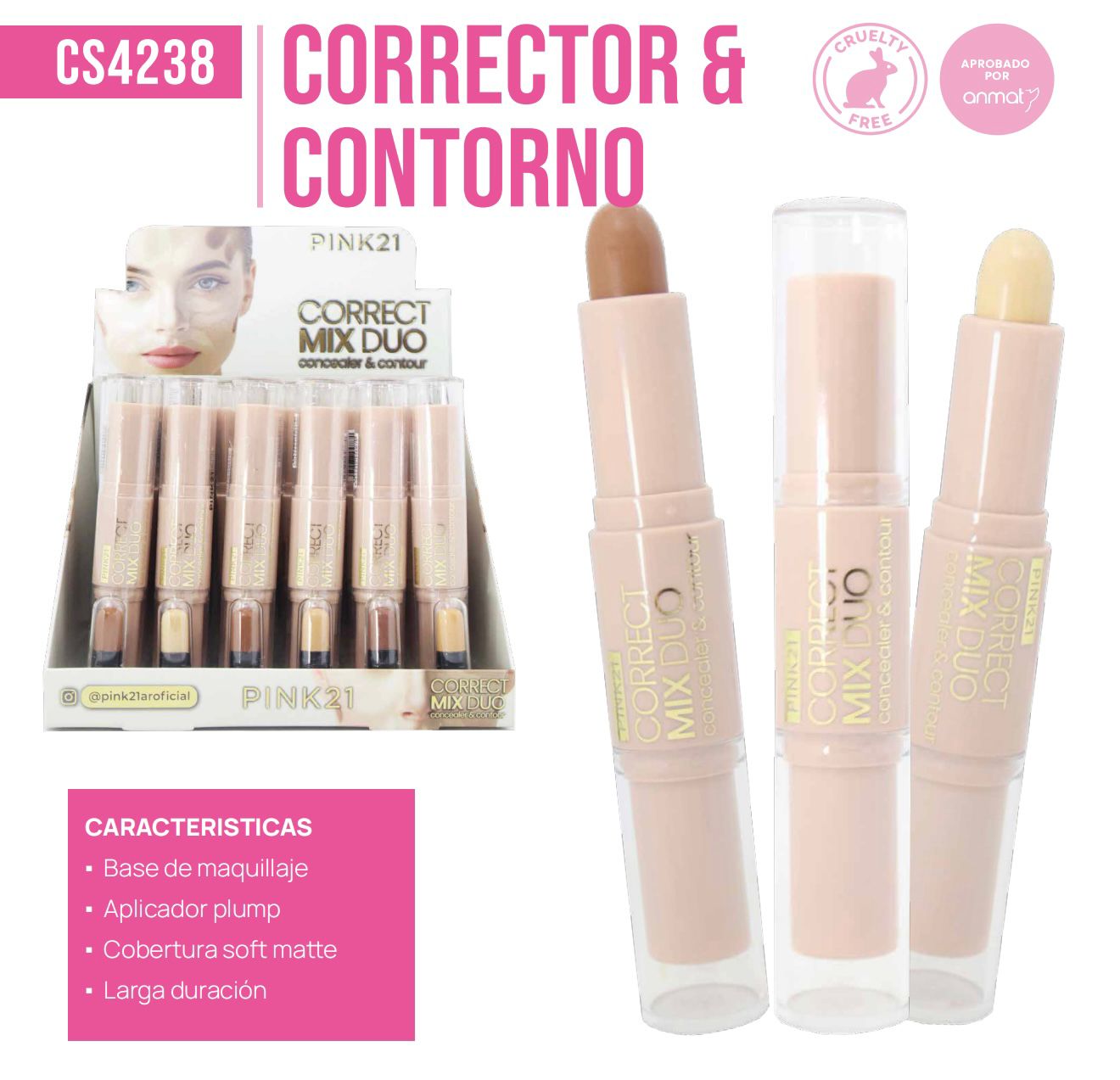 CORRECTOR + CONTORNO PINK21 CS4238 cantidad