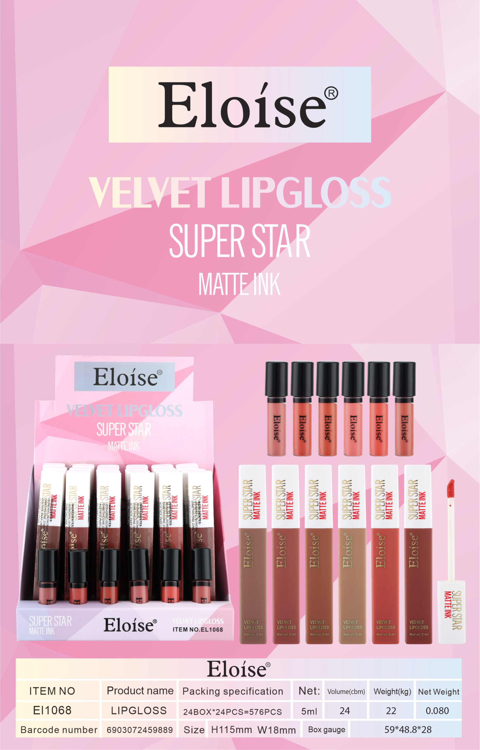 LIPGLOSS ELOISE APROBADO MATTE INK 5ML EL1068 59889 cantidad